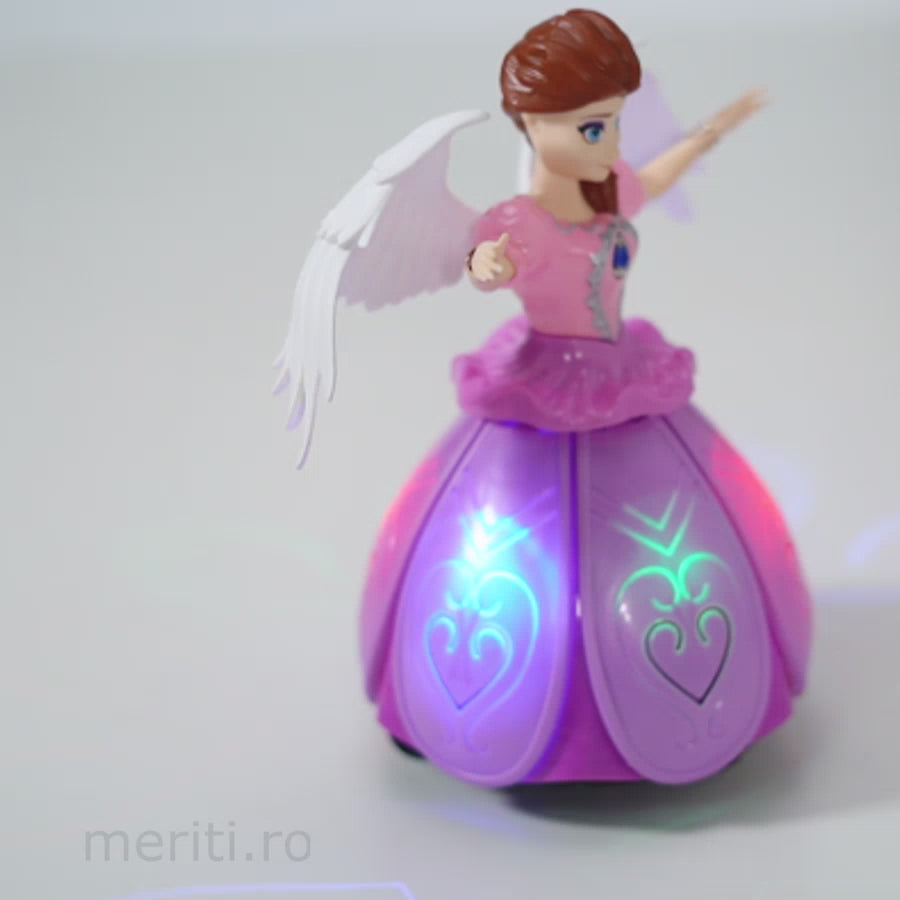 Papusa printesa Angel Girl stie sa danseze printre sclipiri de lumina muticolora, sa cante si sa bucure orice fetita printesa,