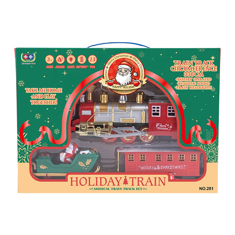 Trenuleț electric decorativ de Crăciun cu lumini și sunete, 336 cm, 13 piese, pentru brad